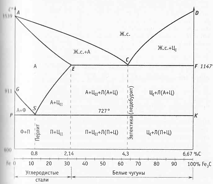 Диаграмма состояния железо-углерод (Fe-Fe3C): первичная кристаллизация и структура сплавов