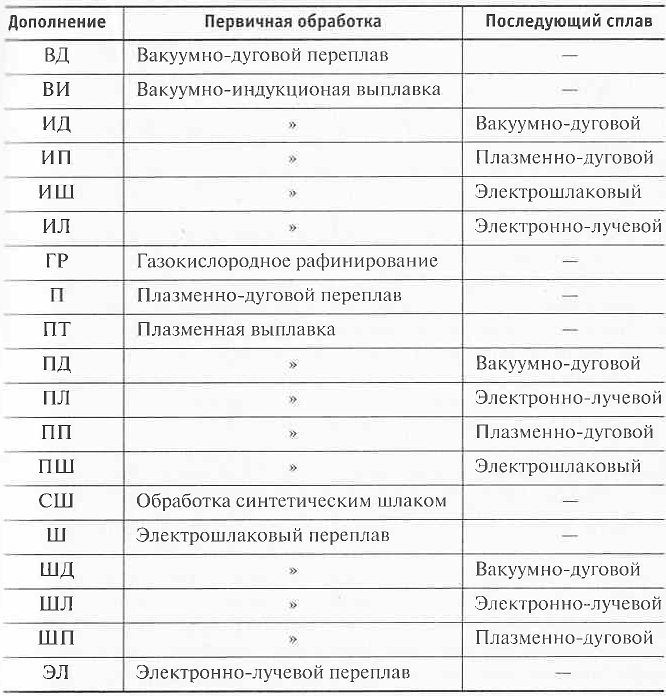 Таб. 5.1. Дополнение к марочным обозначениям высоко- и особовысококачественных сталей